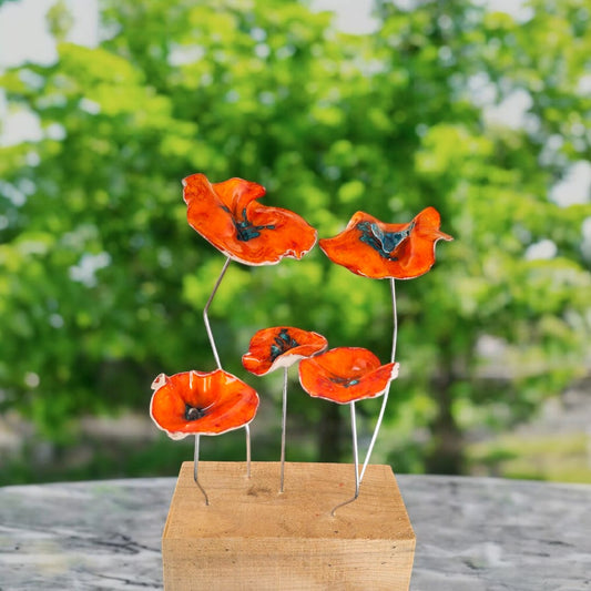 Tek tek elle şekillendirilmiş, sır ve oksitlerle renklendirilmiş gelincikler. Herhangi bir kalıp veya şablon kullanılmadığı için her biri biricik ve size özel.